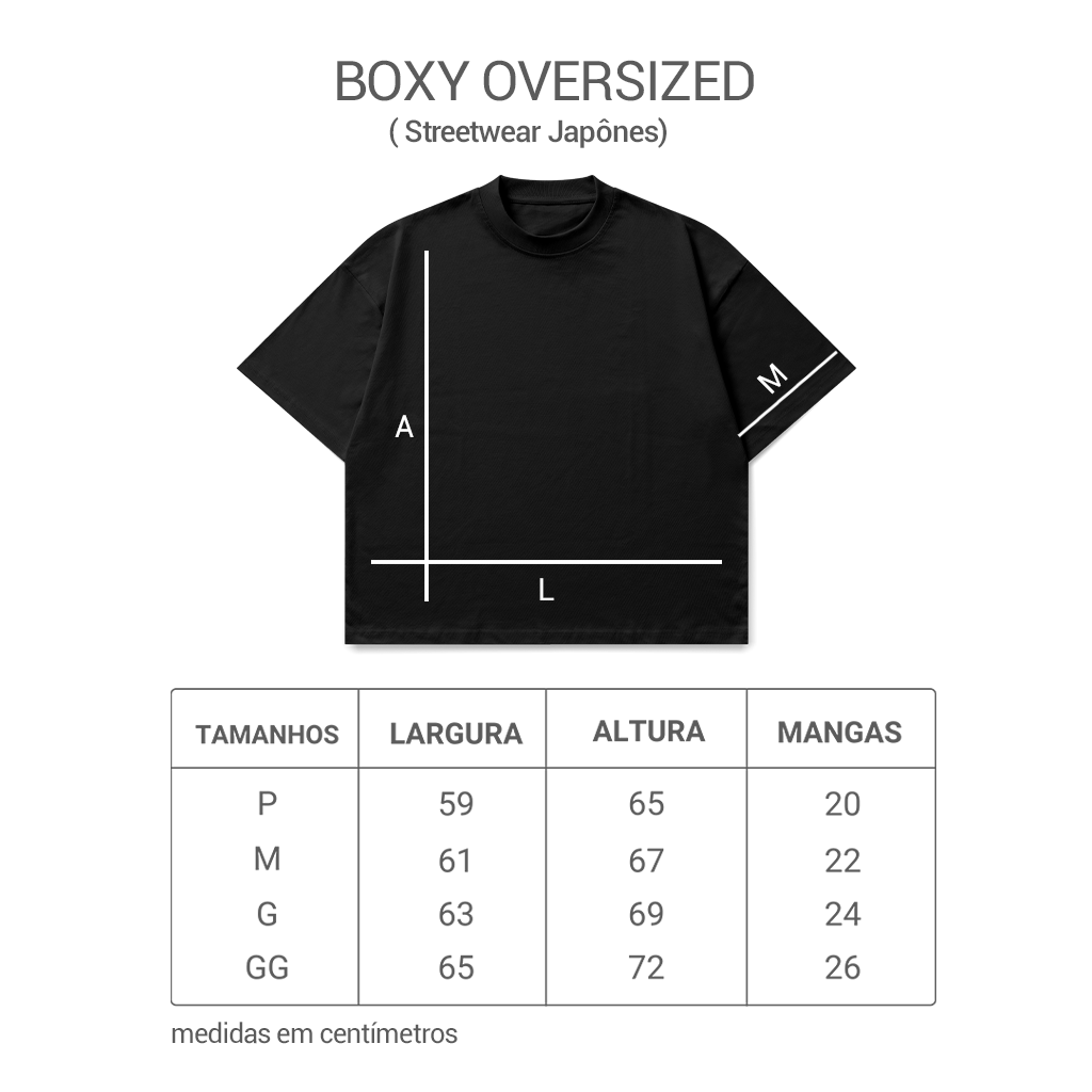 O corte oversized proporciona liberdade de movimento e um visual descolado, perfeito para composições que vão do minimalismo ao streetwear autêntico.