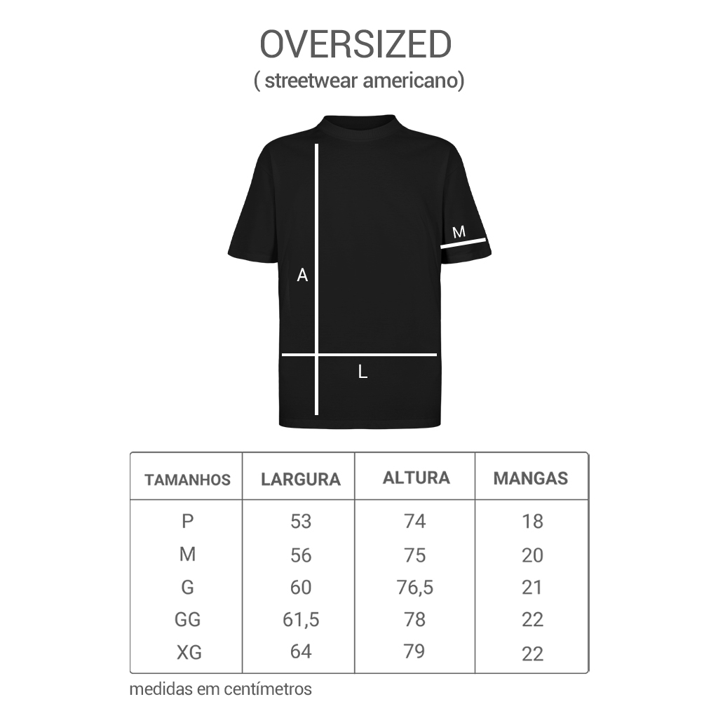 Com modelagem streetwear, possui medidas mais amplas no comprimento, garantindo um caimento moderno e estiloso. A gola em anel de 2,7 cm com ribana canelada 2x1 e o reforço ombro a ombro oferecem mais resistência e durabilidade.